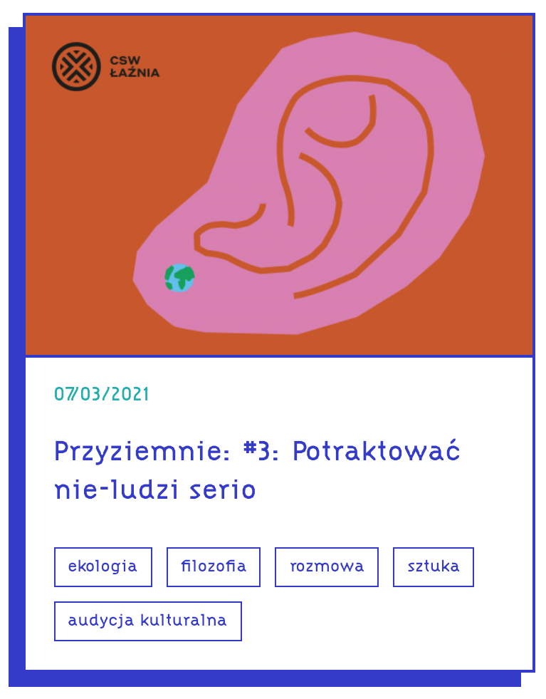 O ucieleśnionym doświadczaniu świata, wyzwaniach w przyjmowaniu perspektyw pozaludzkich, bagiennych kolaboracjach międzygatunkowych oraz zmianie popularnej percepcji bagien rozmawiają Krysia Jędrzejewska-Szmek i Olga Roszkowska z Iwą Kołodziejską, botaniczką i antropolożką, tuż po jej wyjściu z Camery Obscury, ustawionej przez nas na Zakolu Wawerskim w lipcu 2020. Iwa: W kamerze uderzyły mnie dźwięki, szczególnie w tej pierwszej fazie, […]